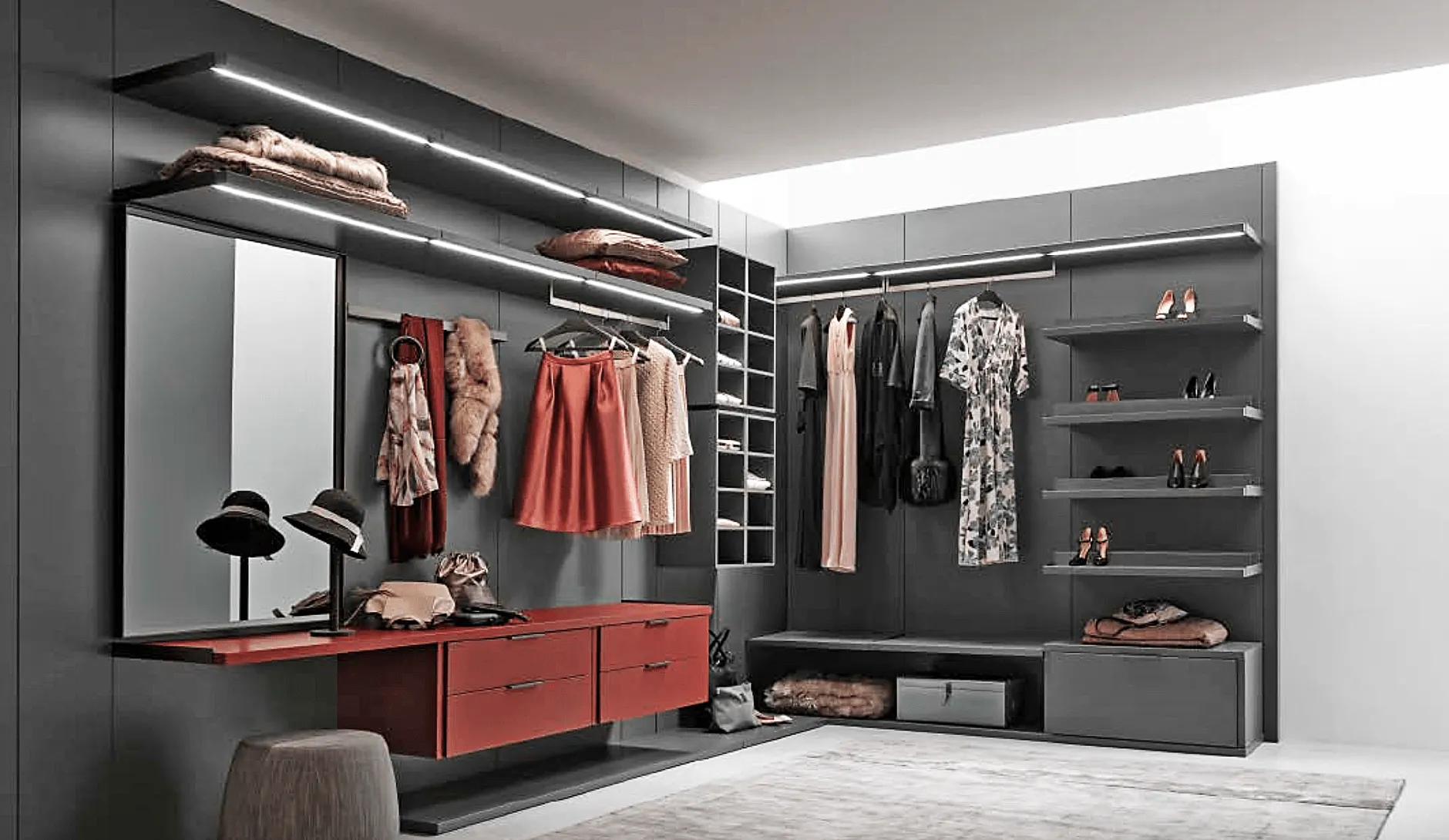 3. **Освещение**: Уделите внимание освещению. Используйте встроенные светильники и подсветку полок, чтобы создать уютную атмосферу и облегчить поиск нужных вещей.