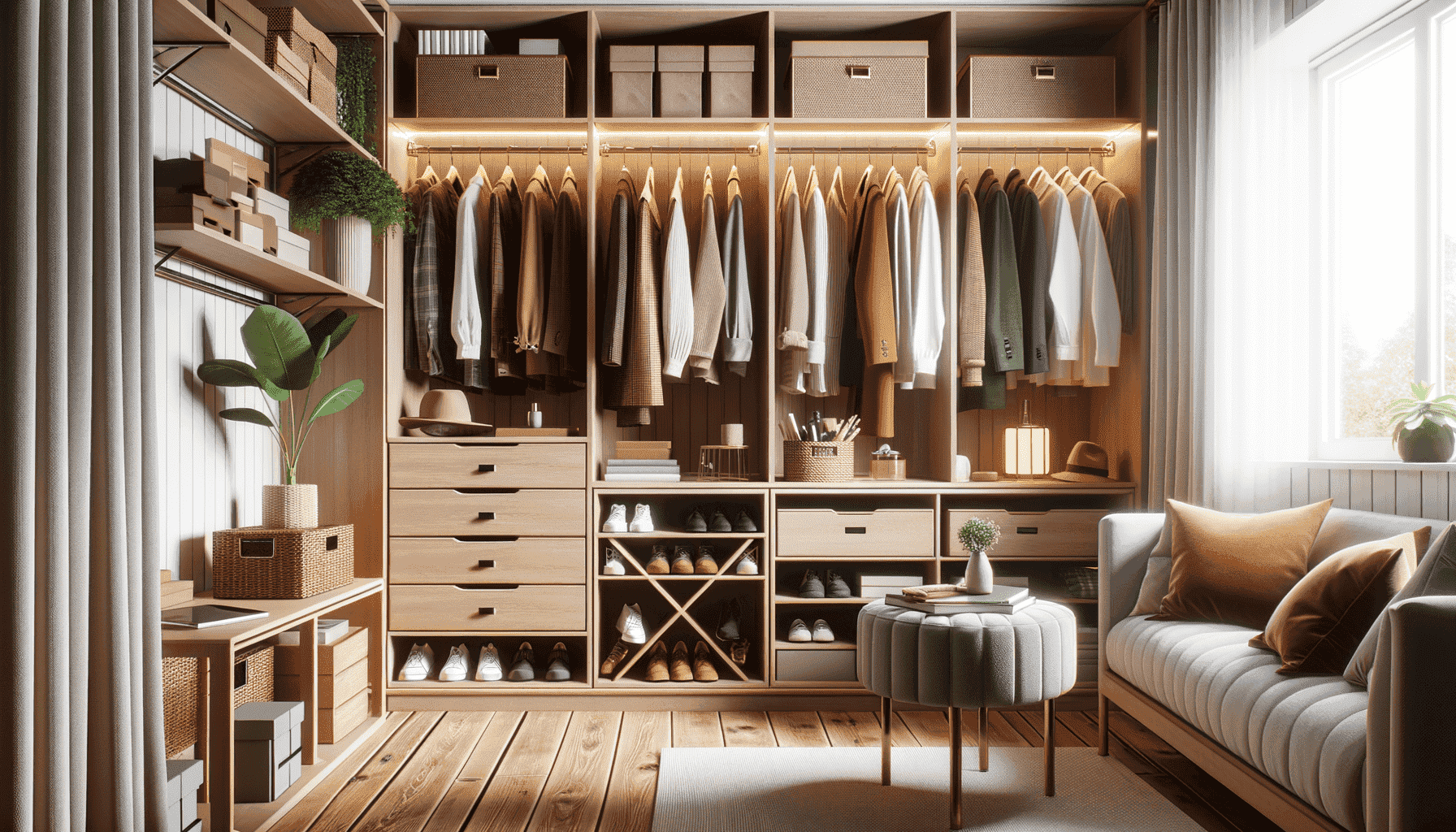 1. Какие аксессуары для гардеробной помогут визуально увеличить пространство?