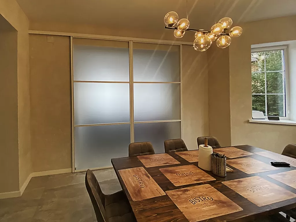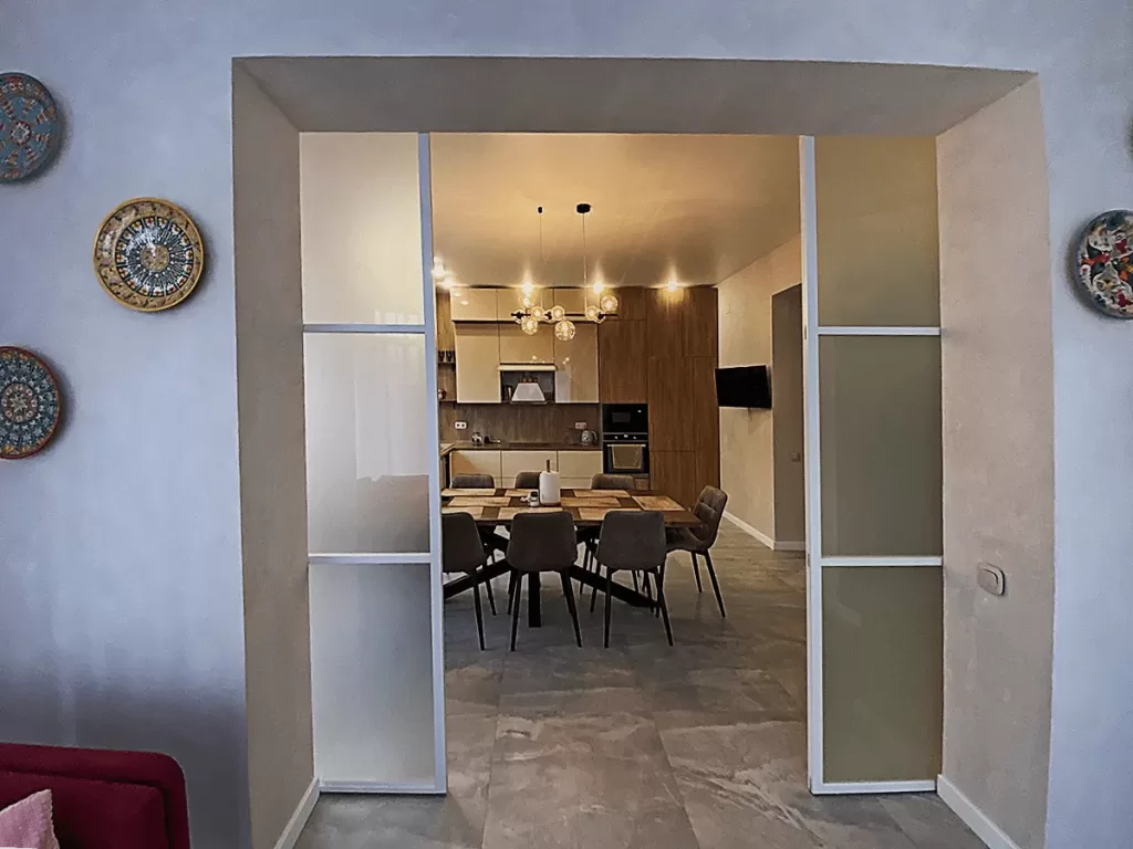 В жилых интерьерах аристо перегородки часто применяются для разделения пространства в студиях или квартирах с открытой планировкой. Они позволяют визуально расширить пространство и при этом создать отдельные функциональные зоны, например, выделить рабочий кабинет или зону отдыха.