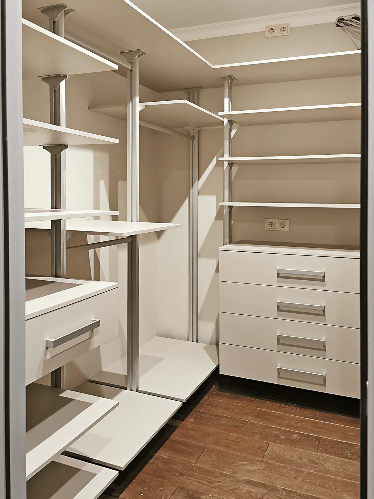 Откройте дверь в мир идеального порядка с гардеробной на заказ! Создайте уникальный дизайн и получите максимальную функциональность с индивидуальным проектом.