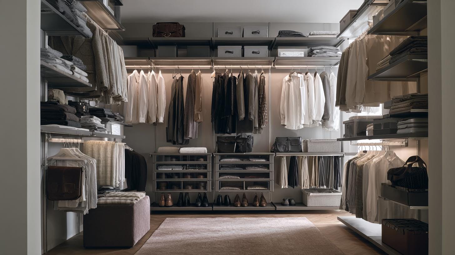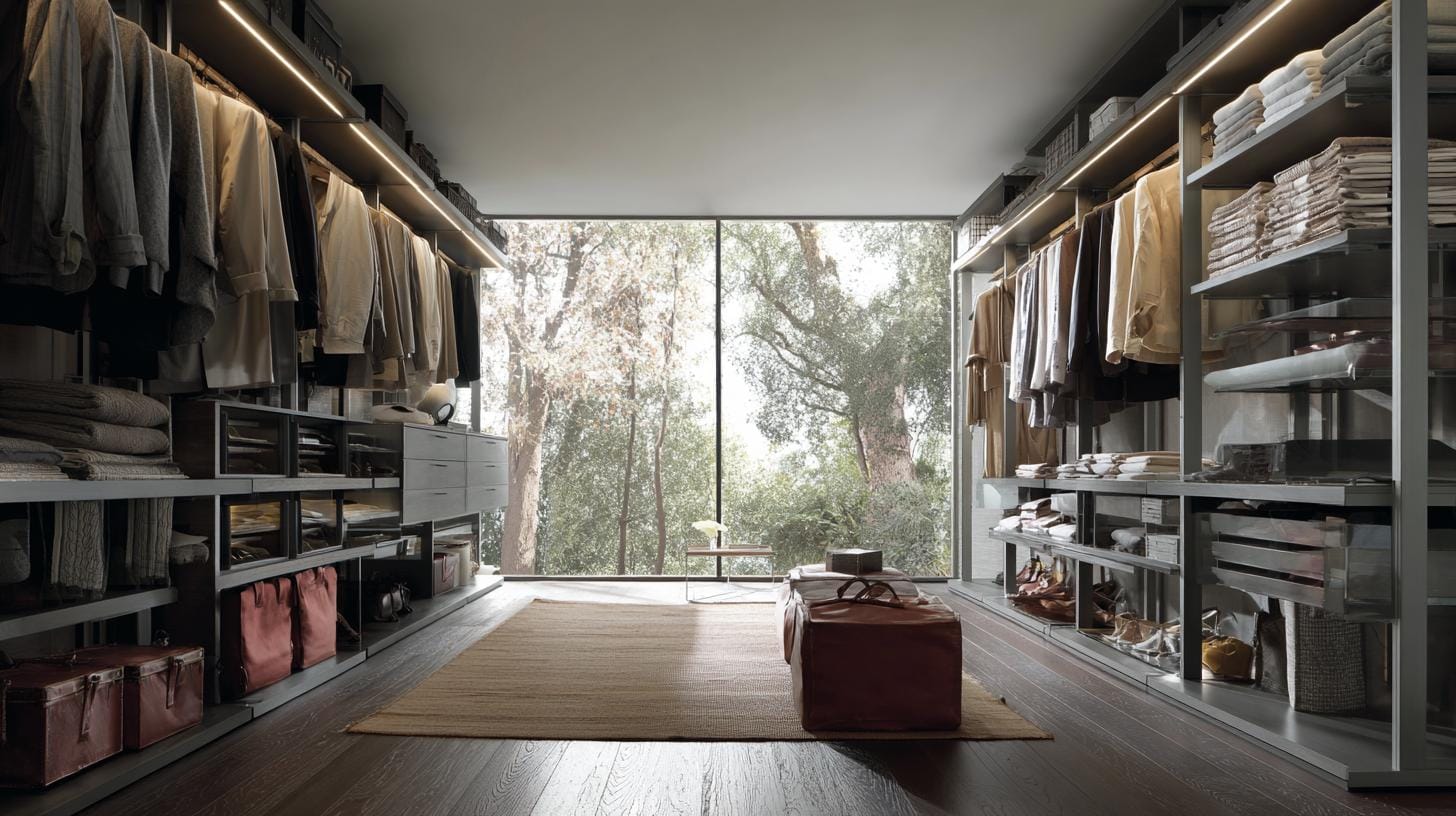 Открытые гардеробные системы, например Rimadesio Zenit или аналогичные решения, умеют растворяться в интерьере, не перегружая его. Они дают пространству дышать, превращая вещи в элемент декора, а не в хаос. Ниже — чёткий список преимуществ, систематизированный по направлениям.