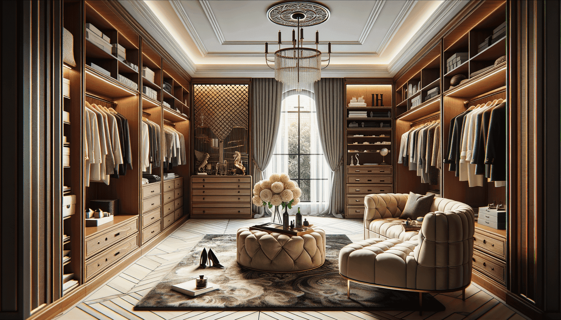 2. Эксклюзивность: Гардеробные комнаты этого класса часто включают в себя редкие или дорогие материалы, нестандартные решения и дизайнерские элементы, что делает их по-настоящему эксклюзивными.