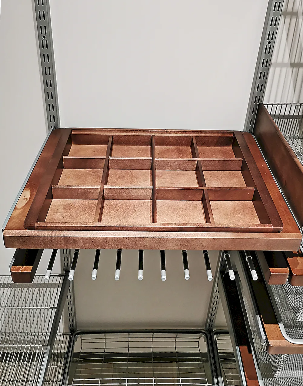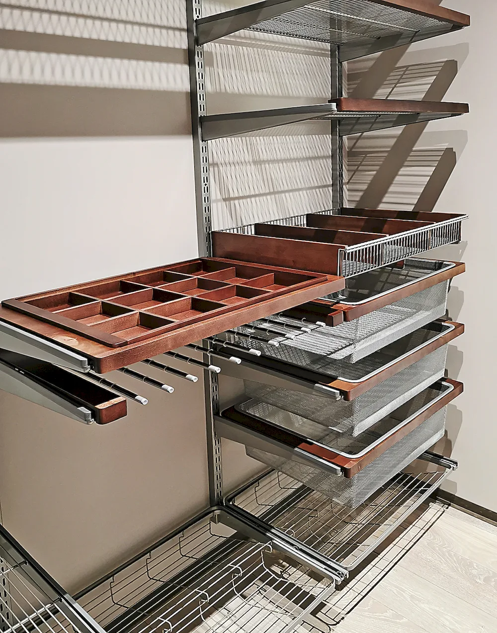 Организация пространства гардеробной – это искусство, которое специалисты GarderobeMaster владеют в совершенстве. Продумывается каждая полка, каждый ящик и вешалка, чтобы в итоге клиент получил не только красивую, но и максимально функциональную гардеробную. Разнообразие аксессуаров и дополнительных элементов позволяет создать уникальную и удобную систему хранения для любых предметов гардероба.