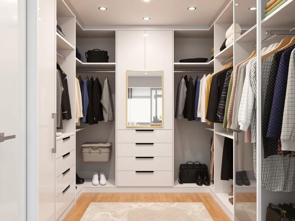 П-образная гардеробная: максимальная вместимость и порядок
