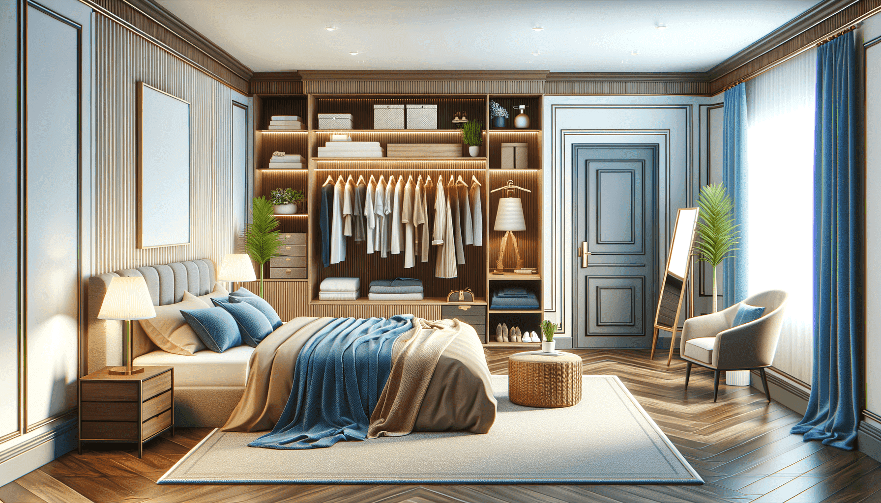 Когда мы обустраиваем гардеробную в спальне, необходимо учесть не только ее функциональность, но и эстетику интерьера. Одним из ключевых аспектов является правильный выбор материалов и цветовой гаммы. Чтобы создать гармоничное сочетание, можно использовать натуральные оттенки дерева или пастельные тона. Такой подход добавит спокойствия и уюта в спальню. Кроме
