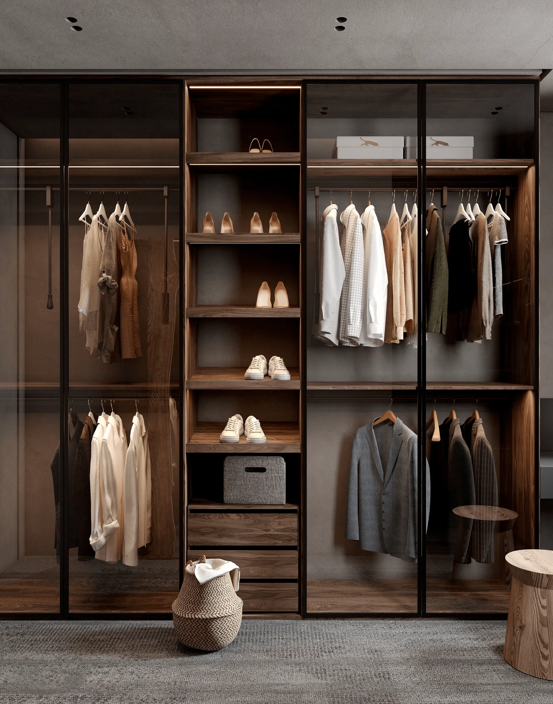 Да, современные технологии позволяют интегрировать системы «умный дом» для управления освещением, климатом и даже системами безопасности в вашей гардеробной комнате заказ.