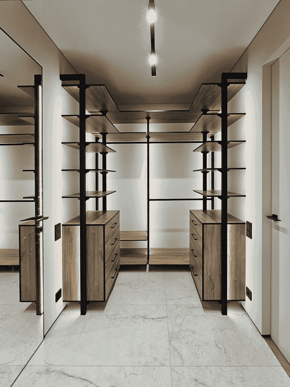 Выбор материалов для мужской гардеробной – это отдельный процесс, в котором учитываются как эстетические предпочтения, так и практические соображения. Натуральное дерево, стекло, металл – каждый из этих материалов способен добавить интерьеру определенный характер и создать нужную атмосферу.