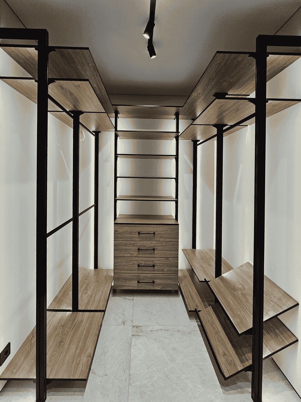 Для пожилых людей важно, чтобы гардеробная на заказ была удобной и безопасной. Предпочтение следует отдать выдвижным системам и открытым полкам, чтобы избежать необходимости нагибаться или тянуться за вещами. Освещение должно быть ярким, но рассеянным, чтобы не создавать слепящих бликов.