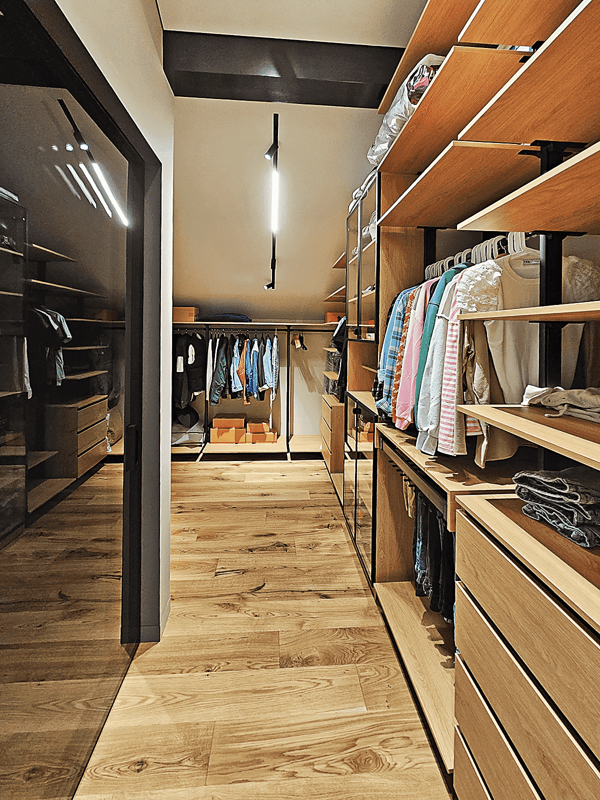 • Индивидуальный дизайн: Гардеробная будет спроектирована с учетом ваших вкусов и предпочтений, станет гармоничным продолжением вашего дома.