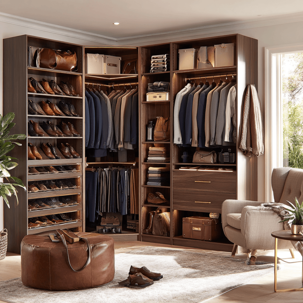 1. **Организация делового гардероба**: Создайте отдельные зоны для костюмов, рубашек, галстуков и обуви. Это поможет быстро находить нужные вещи и поддерживать их в идеальном состоянии.