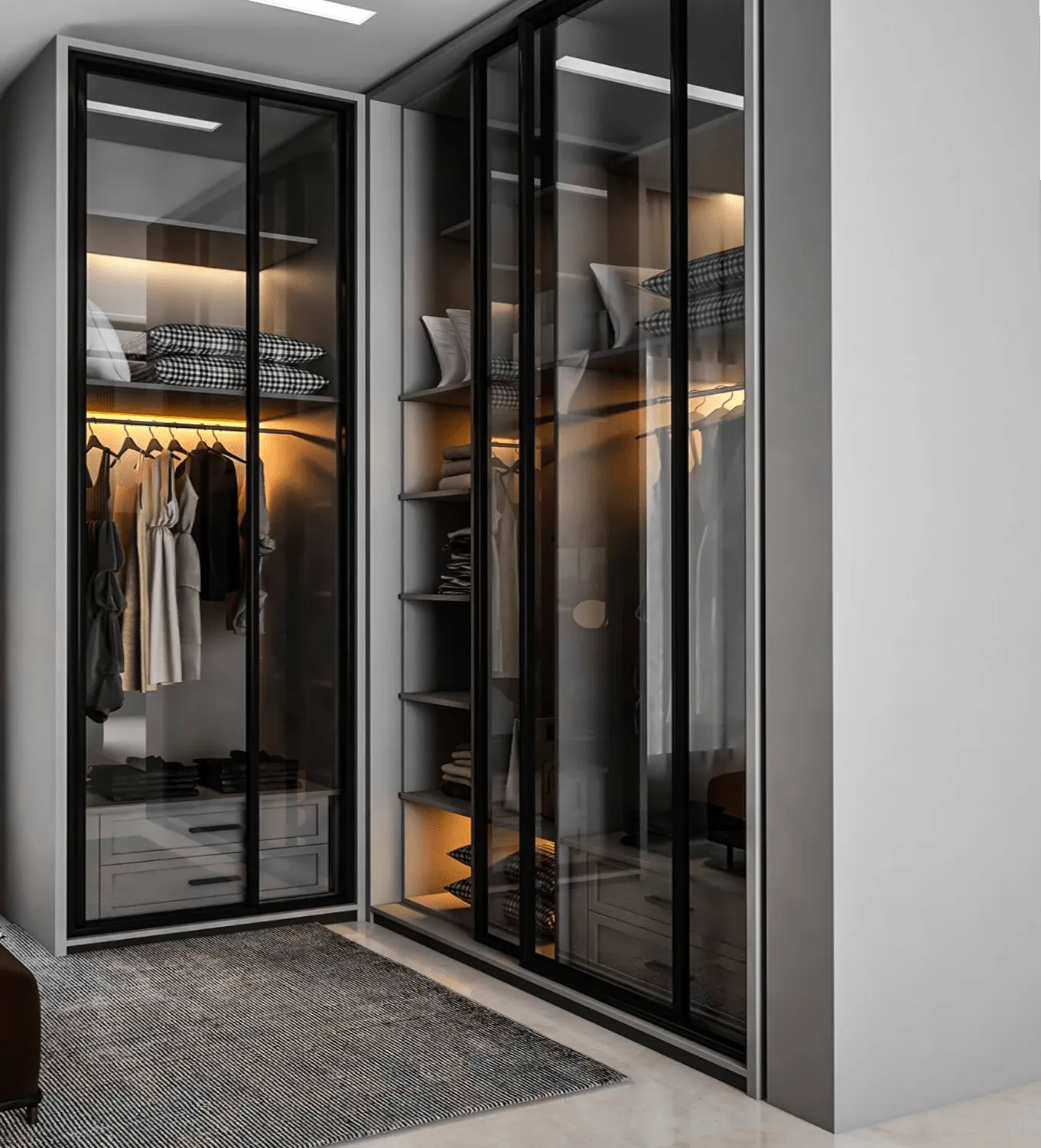 • Используемые материалы. Натуральные и высококачественные материалы, такие как дерево, кожа и стекло, могут значительно увеличить стоимость гардеробной.