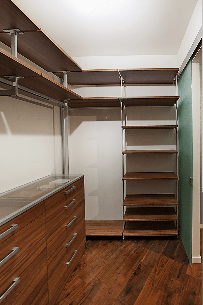 3. **Использование сидений**: Добавьте сиденья в гардеробную систему, чтобы упростить процесс одевания и обувания.