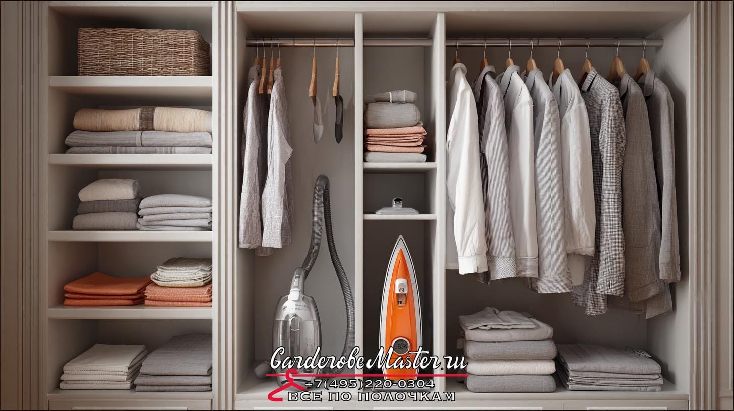 Гардеробная система с местом для пылесоса и гладильной доски: вы всё ещё ищете, куда их приткнуть рядом со свитерами?