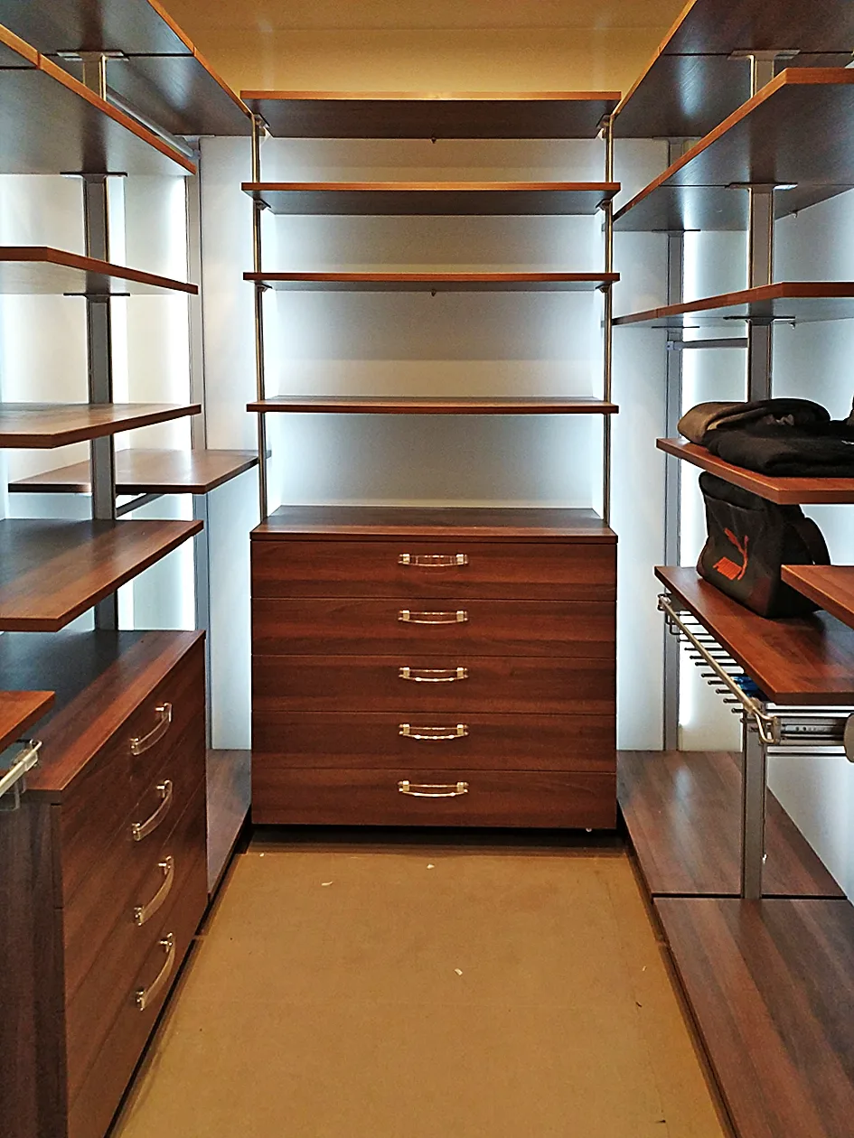 Пары, чьи дети уже выросли и покинули дом, могут использовать гардеробную систему Slim Eureka для создания идеального пространства для хранения своей одежды и аксессуаров.
