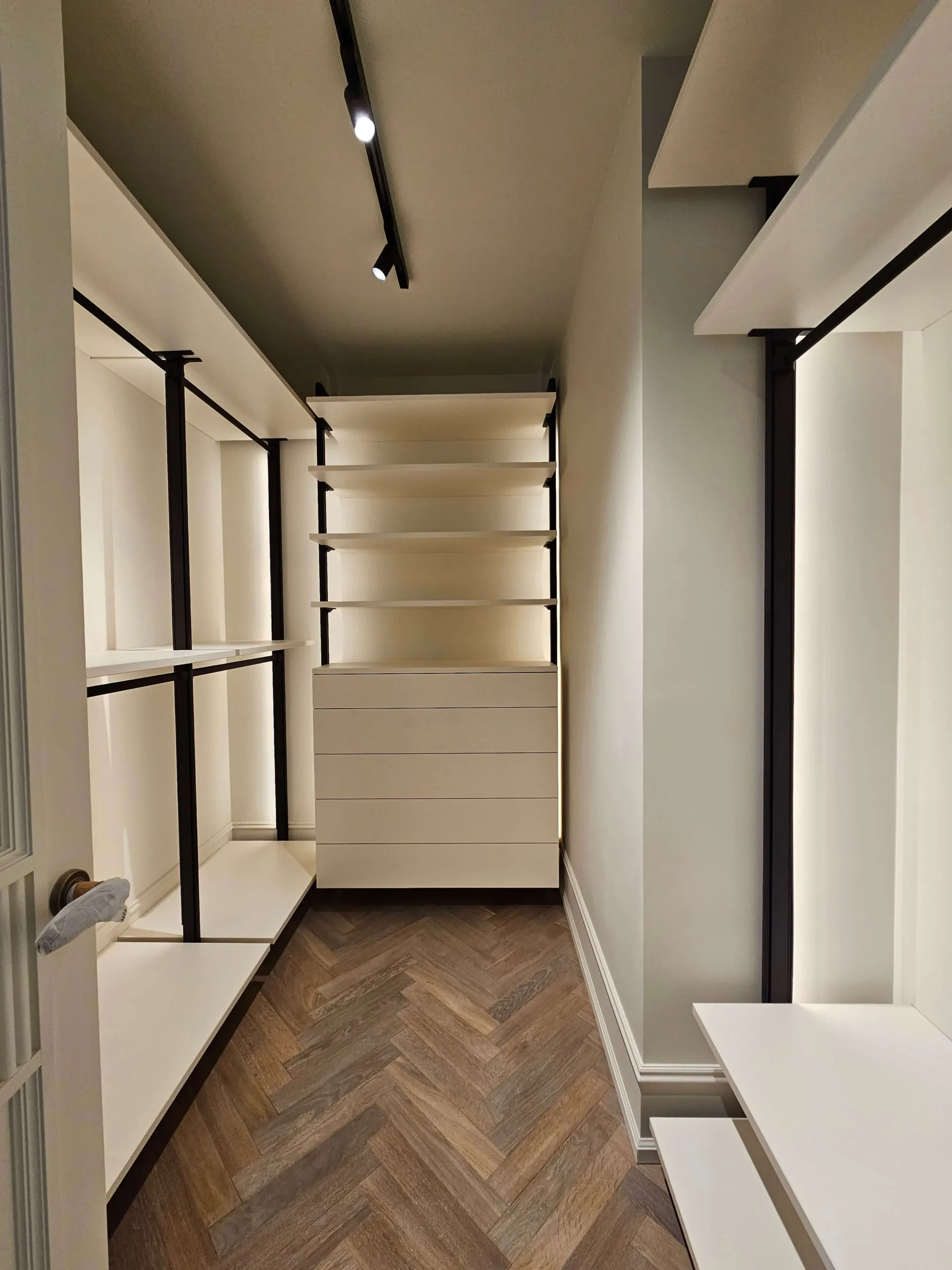 Гардеробная система Slim Eureka позволяет эффективно использовать даже небольшие помещения. Благодаря продуманной конструкции и возможности индивидуальной настройки, она помогает сэкономить пространство и создать уютную атмосферу. В одном из московских апартаментов, где каждый квадратный метр на вес золота, установка этой системы позволила освободить значительное количество места.