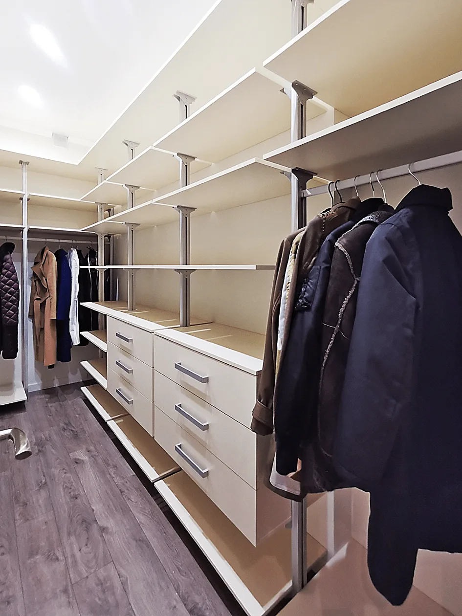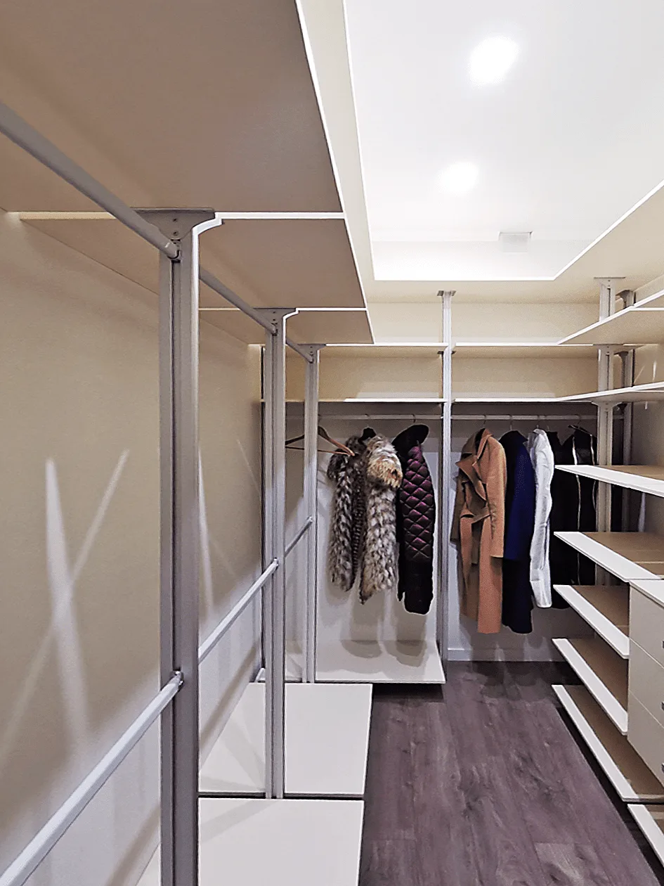 Пример: Бизнесмен Сергей установил гардеробную стенку с вешалками для костюмов и рубашек, а также полками для обуви и аксессуаров. Он добавил встроенное освещение и зеркало, чтобы упростить утренние сборы и всегда выглядеть безупречно.
