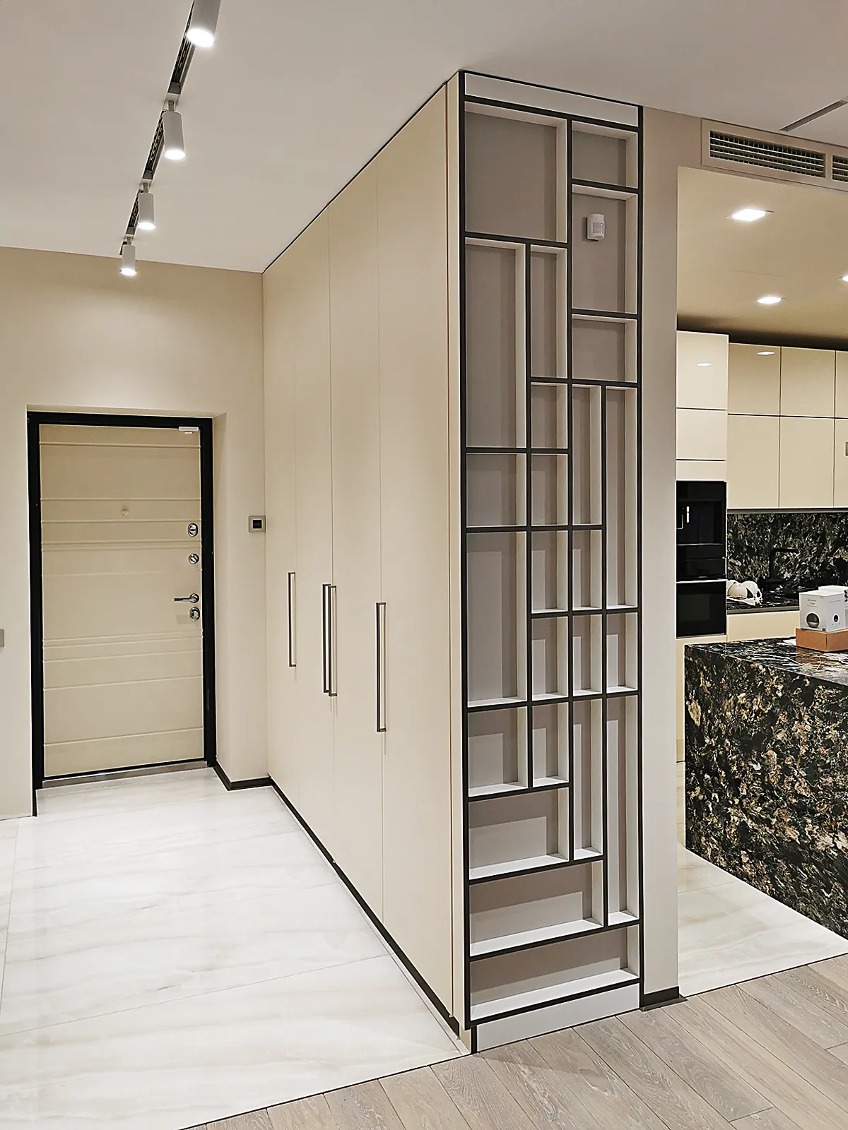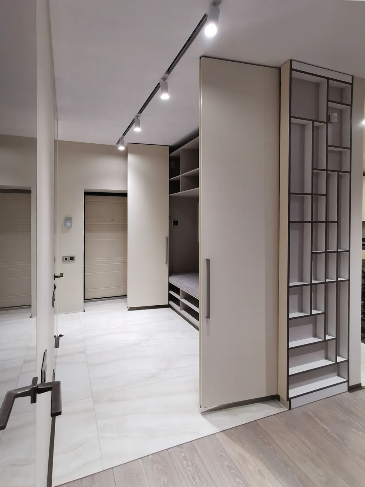 8. Гардеробная с глухими дверями для любителей изысканной кухни