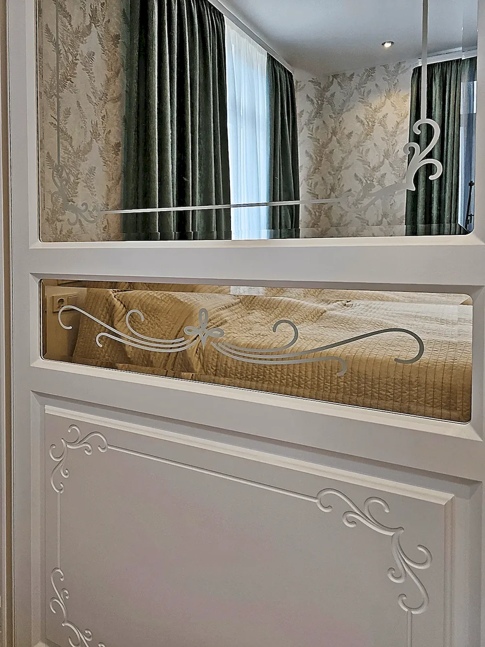 Классические двери в гардеробной создают атмосферу роскоши и элегантности. Они могут быть выполнены из различных материалов, таких как дерево, стекло, металл, и украшены резьбой, инкрустацией или другими декоративными элементами. Дизайн таких дверей часто вдохновлен классическими архитектурными стилями, такими как барокко, рококо или неоклассицизм, что придает гардеробной изысканный и утонченный вид.