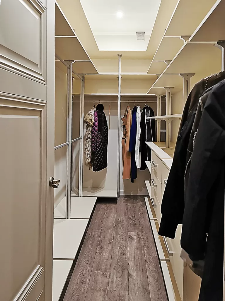 6. Какие системы хранения лучше использовать в гардеробной комнате больших размеров?