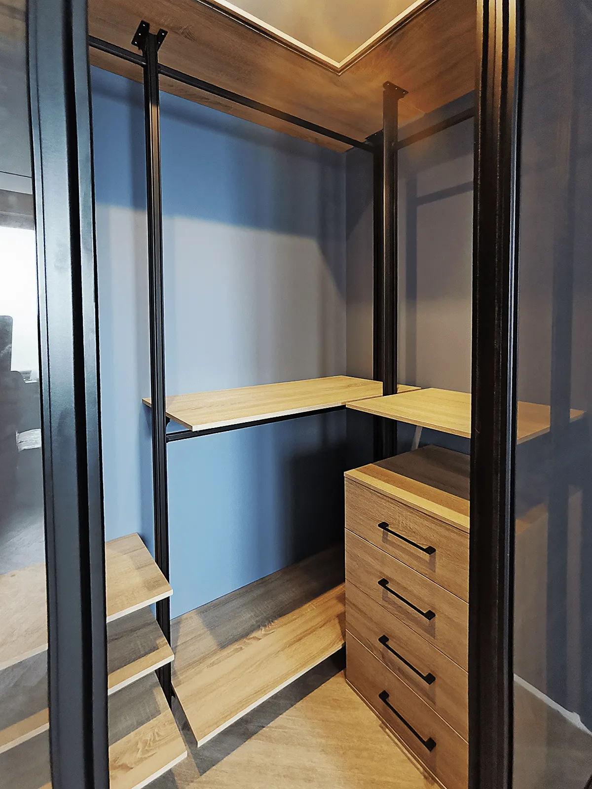 - Индивидуальный подход: каждая гардеробная разрабатывается с учетом уникальных потребностей и предпочтений клиента.