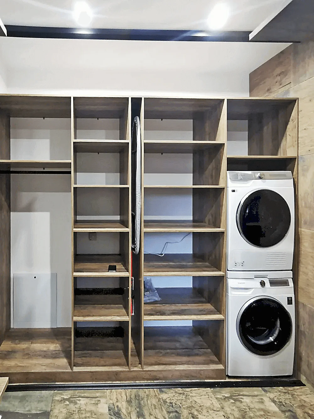 Гардеробная система с местом для пылесоса и гладильной доски: вы всё ещё ищете, куда их приткнуть рядом со свитерами?