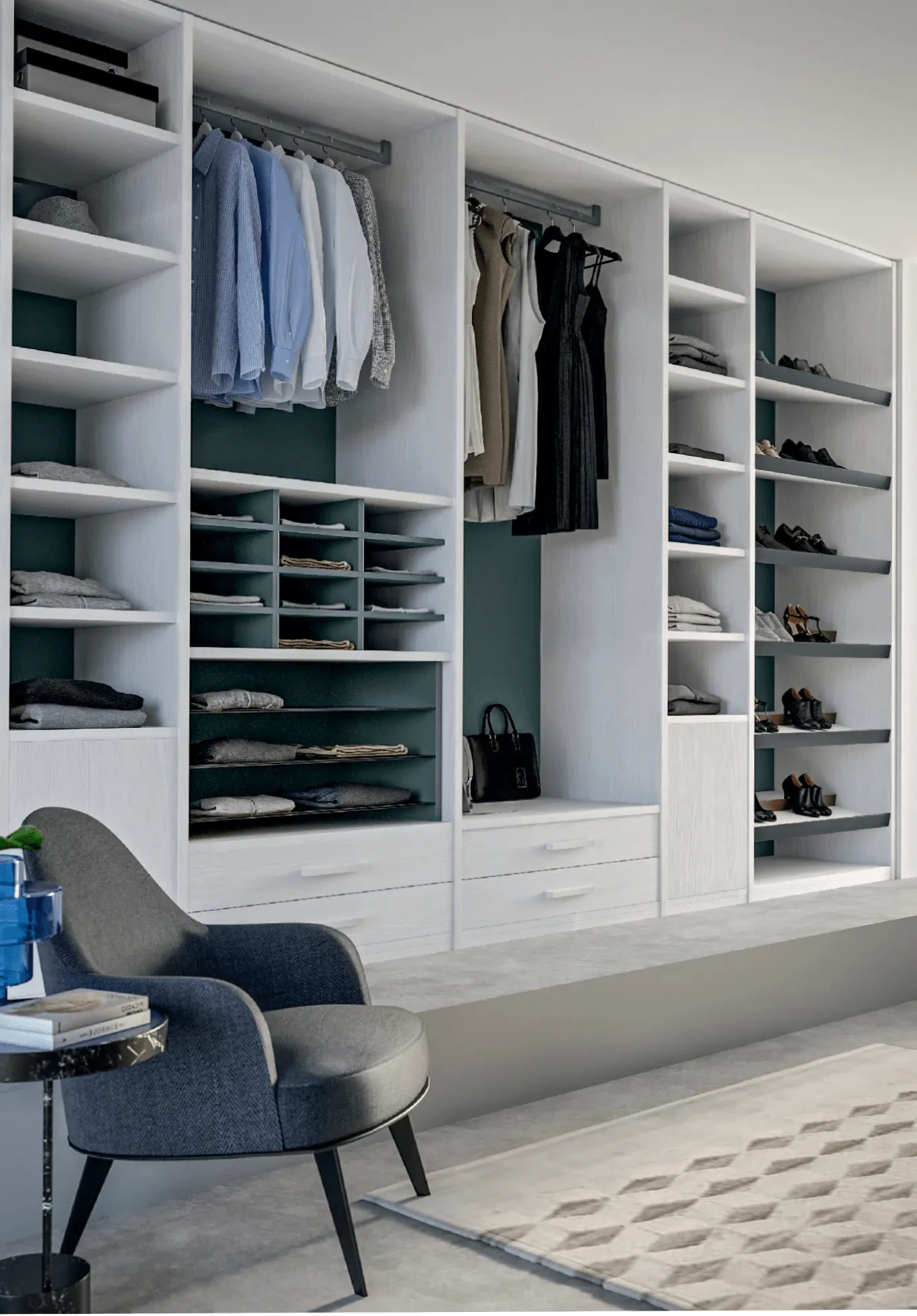 1. Создайте пространство для демонстрации одежды: Любители моды часто хотят видеть свою одежду и аксессуары. Создайте открытые секции и полки для демонстрации ваших любимых вещей.