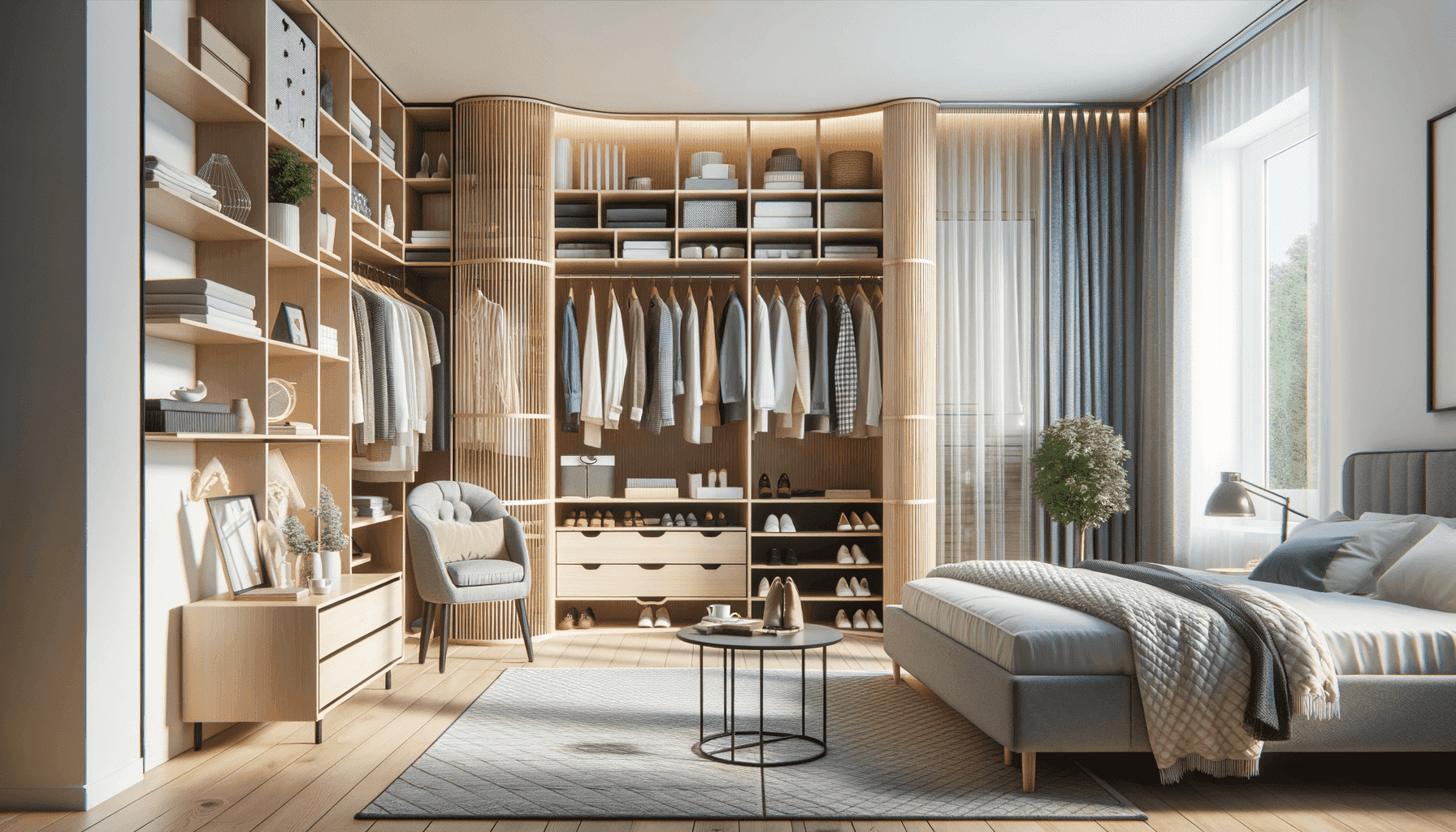 - Улучшенная организация: гардеробные комнаты на заказ помогают создать систему хранения, которая позволяет легко найти нужную одежду и аксессуары. Вы можете организовать вещи по категориям, цветам или сезонам, что значительно упрощает процесс выбора и сборки нарядов.