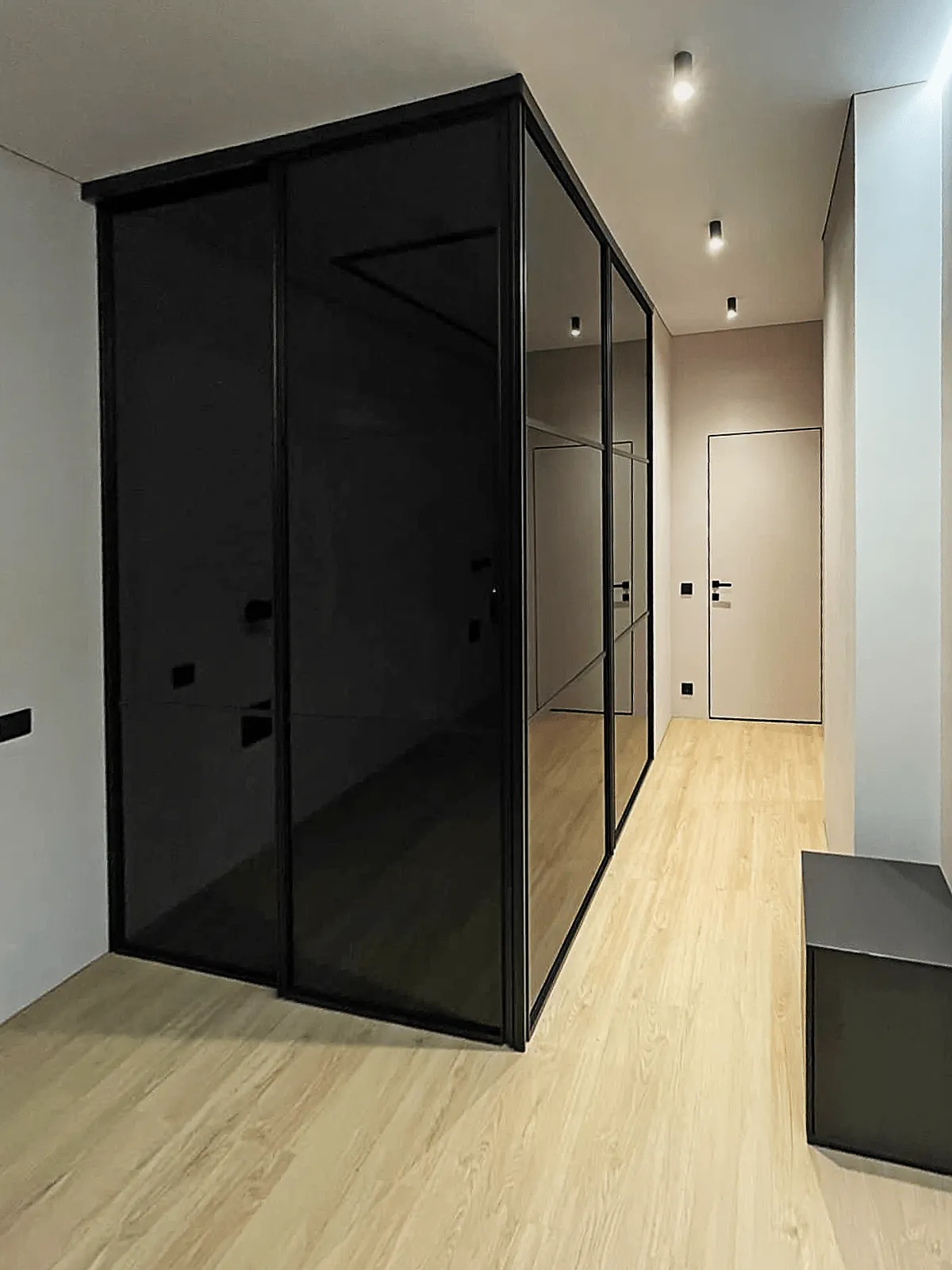 Функциональность: такие двери могут быть оснащены различными полками, ящиками и вешалками, что позволяет удобно хранить одежду и аксессуары.