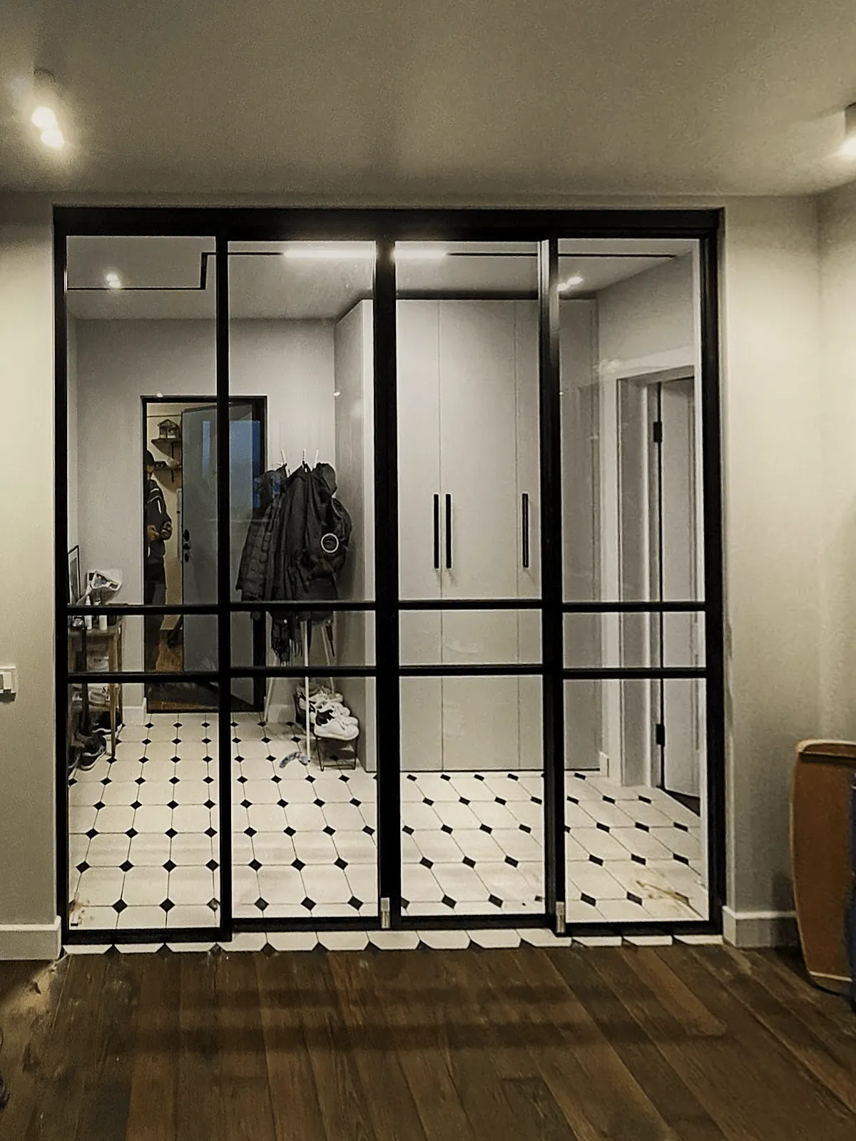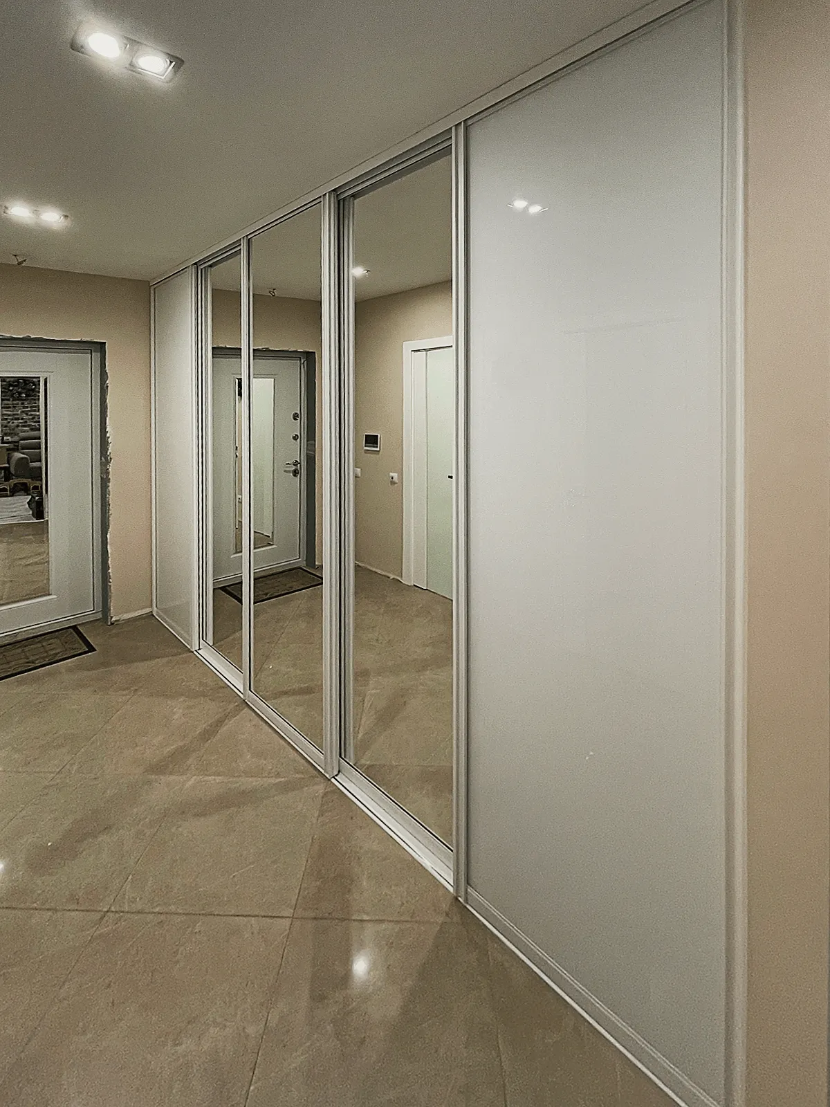 Стеклянные двери для гардеробной: современные решения без направляющих