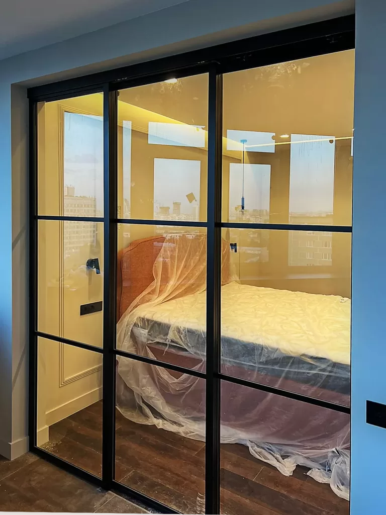 Кроме того, отсутствие направляющих делает такие двери более эстетичными и современными. Они выглядят легкими и воздушными, что особенно актуально для современных интерьеров в стиле минимализм или хай-тек. Это также позволяет избежать накопления пыли и грязи в направляющих, что упрощает уход за дверями.