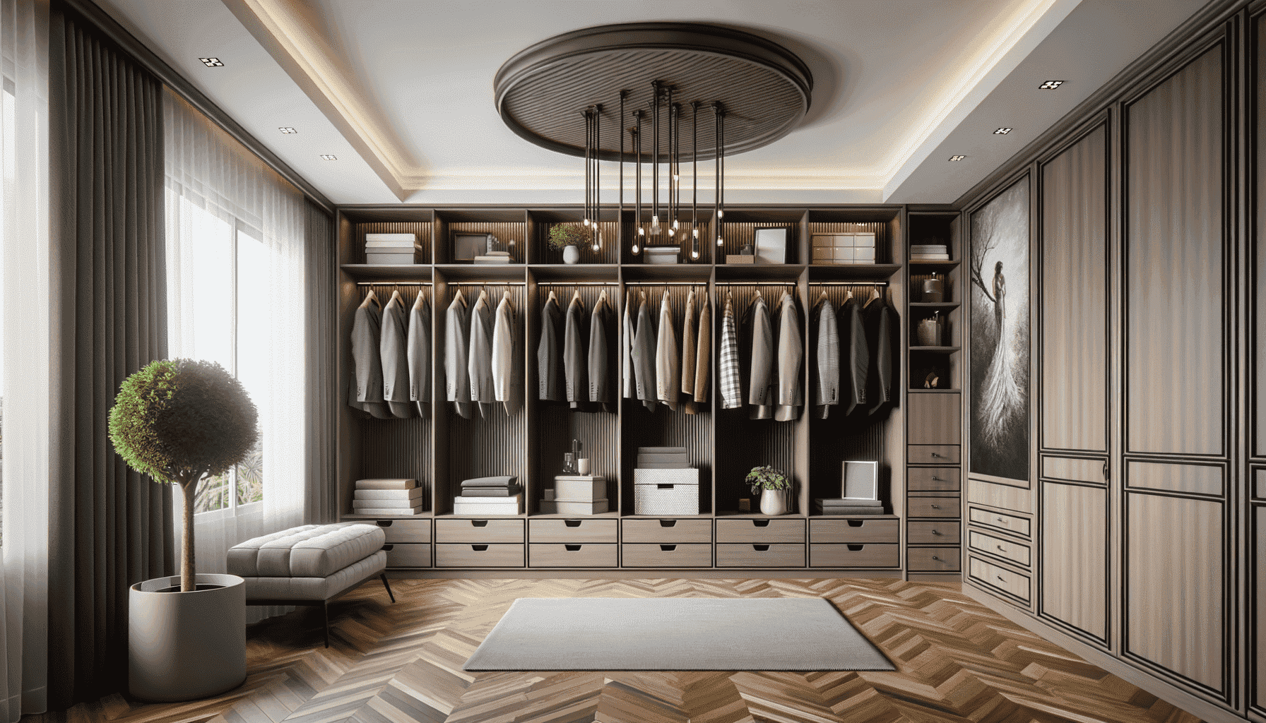 • Индивидуальный дизайн. Вы можете создать гардеробную комнату, которая полностью соответствует вашему стилю и предпочтениям. Выберите материалы, цвета и отделку, которые подходят к дизайну вашего дома.