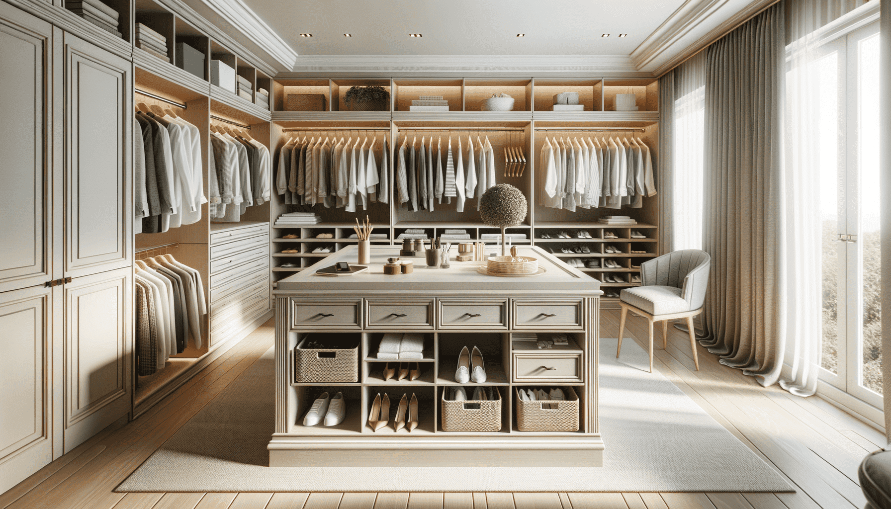 - Пример 1: Гардеробная комната с островом