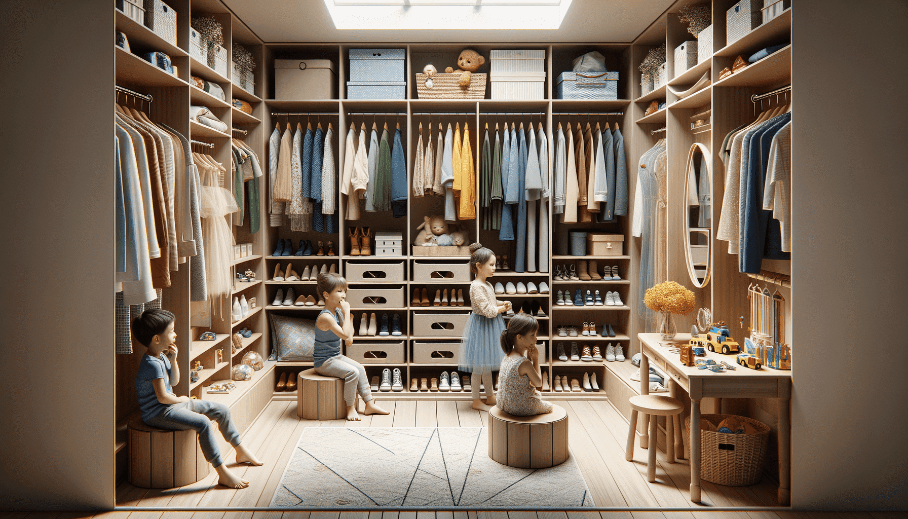 Семья с тремя детьми заказала гардеробную комнату, которая учитывала потребности каждого члена семьи. Гардеробная комната была разделена на несколько зон, каждая из которых предназначена для конкретных вещей и аксессуаров. В одной зоне были размещены полки и штанги для хранения одежды и обуви взрослых членов семьи. Здесь были также предусмотрены отделения для разных типов одежды — платья, костюмы, верхняя одежда и т.д. В другой зоне были установлены полки и ящики для хранения игрушек и вещей детей. Эта зона была организована таким образом, чтобы каждому ребенку было удобно и легко найти свои игрушки и вещи. В третьей зоне были размещены зеркала, столы и ящики для аксессуаров, таких как ювелирные изделия, галстуки, ремни и прочие мелочи. Здесь каждый член семьи мог удобно ухаживать за своими аксессуарами и подбирать их к образам. Все зоны гардеробной комнаты были продуманы с учетом личных предпочтений и потребностей каждого члена семьи, чтобы обеспечить максимальный комфорт и удобство при использовании.
