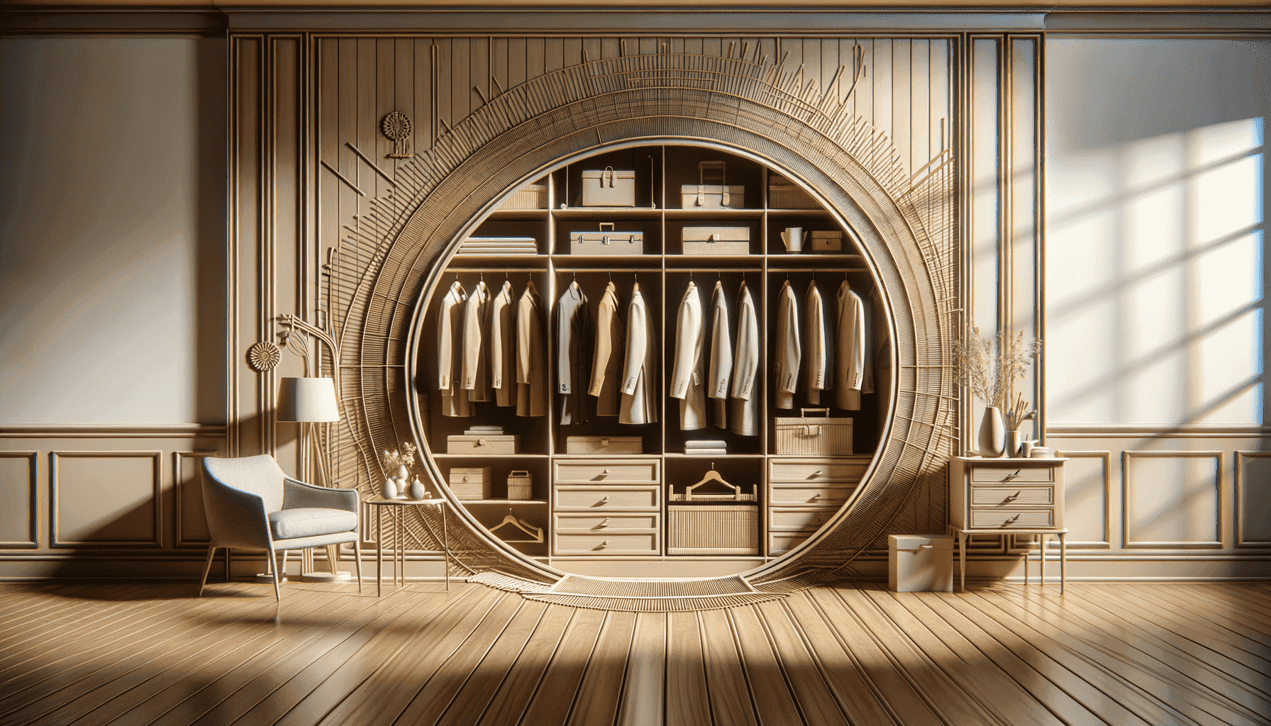 Для любителей путешествий и экзотических культур можно предложить гардеробные, вдохновленные этническими мотивами. Использование натуральных материалов, таких как бамбук или ротанг, а также декоративных элементов в виде масок или статуэток, добавит уникальности и атмосферы путешествий в пространство для хранения одежды.