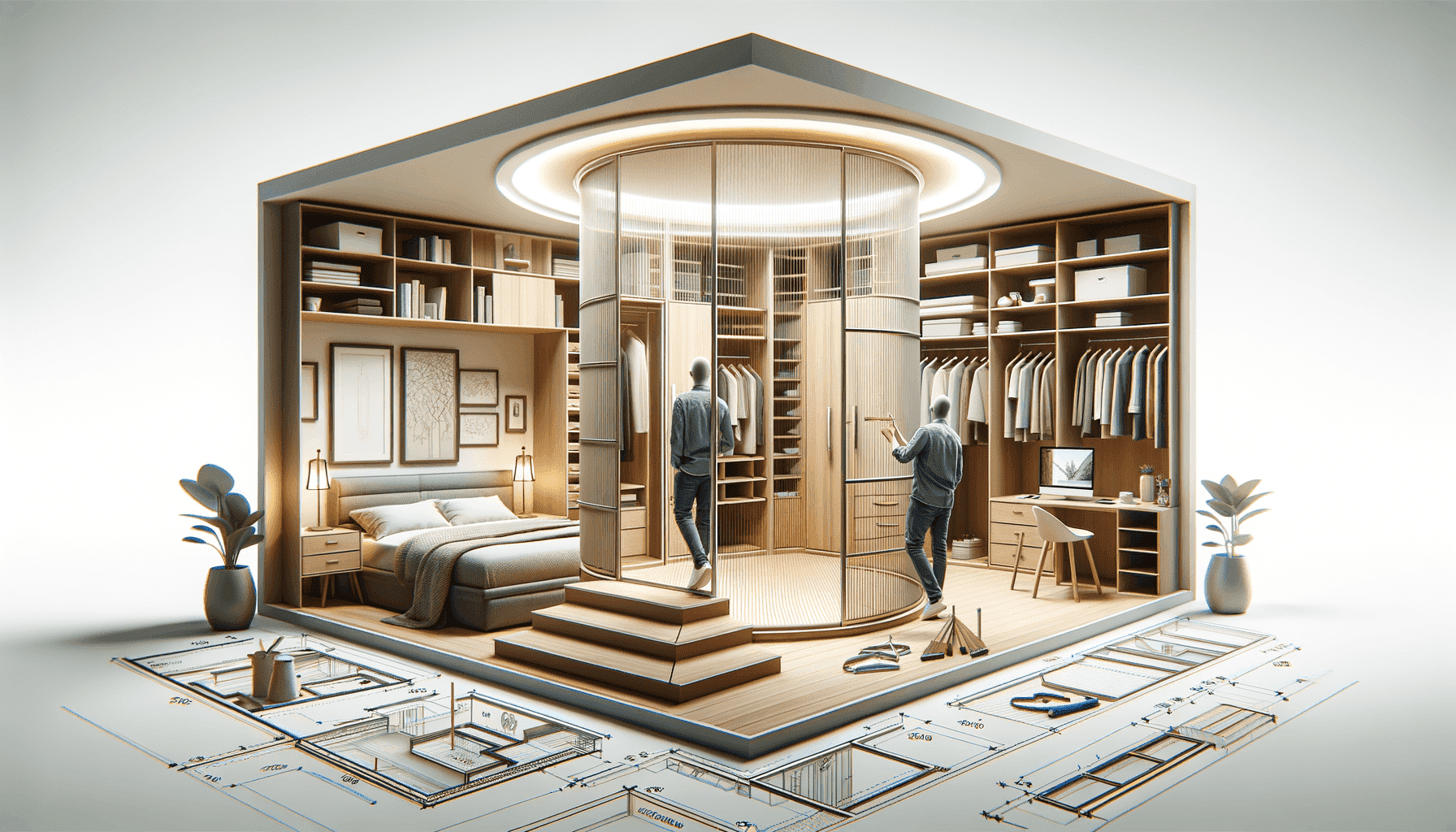 Процесс создания раздвижной гардеробной комнаты