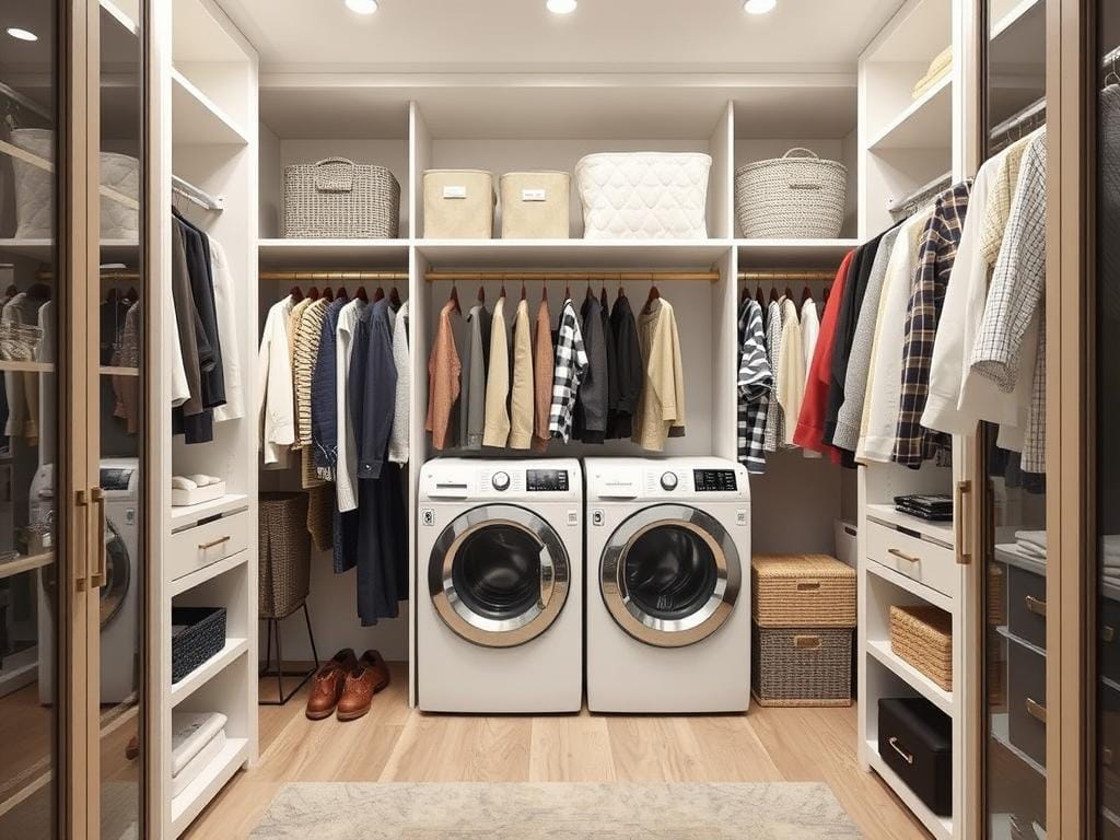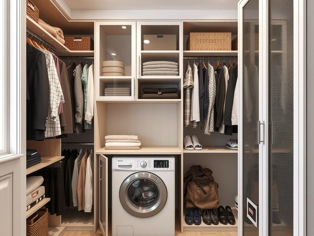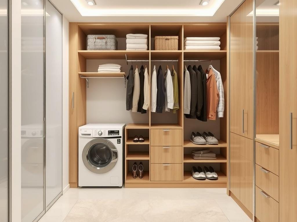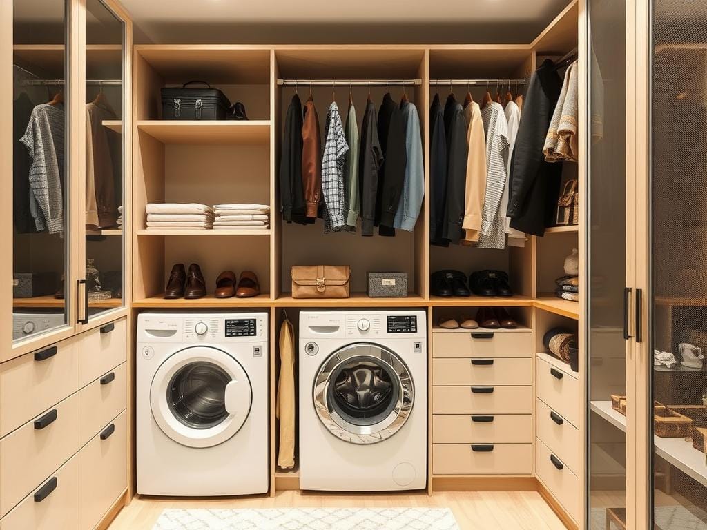 Особенности дизайна гардеробной для размещения стиральной и сушильной машин