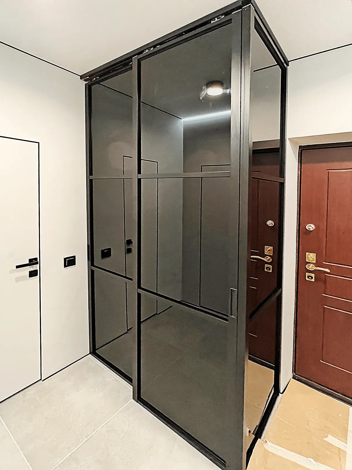 Пример: Семья Кузнецовых установила раздвижные двери без нижней направляющей для гардеробной в своей прихожей. Теперь они могут удобно хранить одежду и аксессуары, а также быстро находить нужные вещи перед выходом.