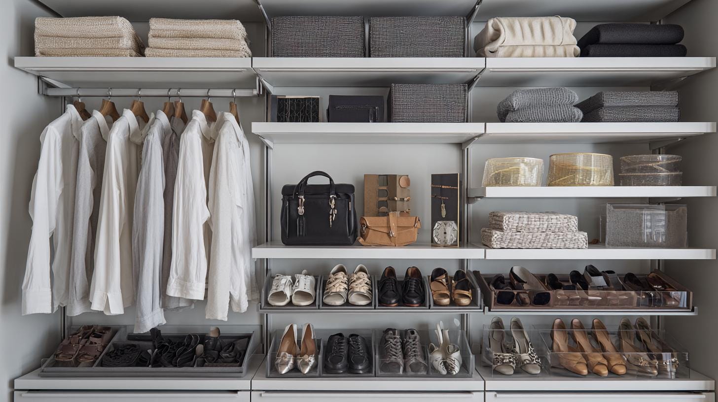 Многие не догадываются, но правильная высота полок для сумок экономит не только место, но и время: сумки среднего размера лучше размещать на уровне глаз — так вы их увидите сразу и не станете тянуться. А ещё интересно работает сценарное хранение: выделите одну секцию для «рабочих вечеров», другую — для «выходных», и вы заметите, что сборы занимают меньше времени. Оказывается, верхние зоны можно использовать для компактных мягких чехлов с сезонной одеждой — они занимают мало места, защищают от пыли и располагаются там, где доступ требуется редко.