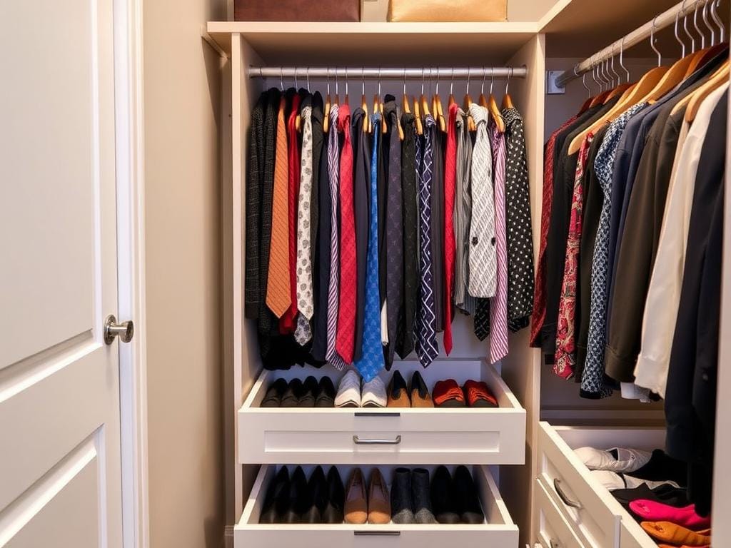 | Вертикальное на широких вешалках | Сохраняет форму, удобен доступ | Требует достаточной высоты | Средний уровень стеллажа или встроенной штанги |