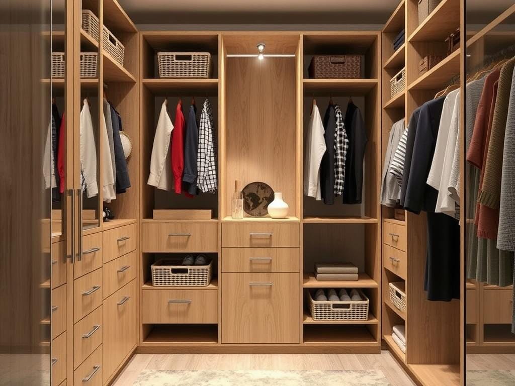 | Выдвижные корзины или ящики | Рациональное использование места | Риск сжатия, если корзины переполнены | Низкие уровни гардеробной |