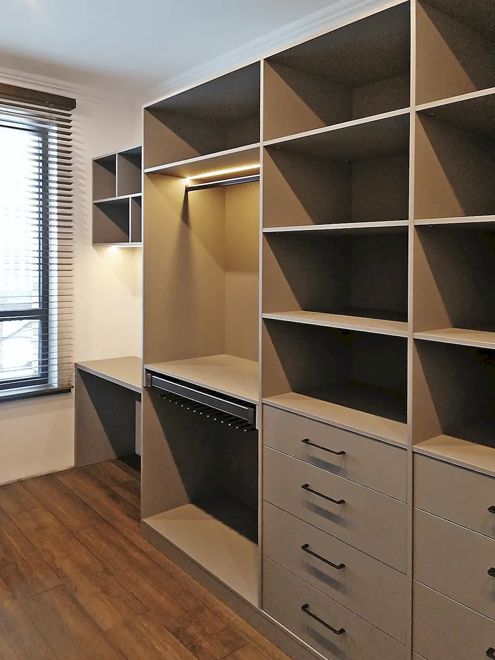 Пример: Любительница роскоши Анна заказала шкаф на заказ для своей гардеробной комнаты. В нем предусмотрены отделения для одежды, обуви и аксессуаров. Благодаря этому решению, она всегда может быстро найти нужные вещи и поддерживать безупречный внешний вид.