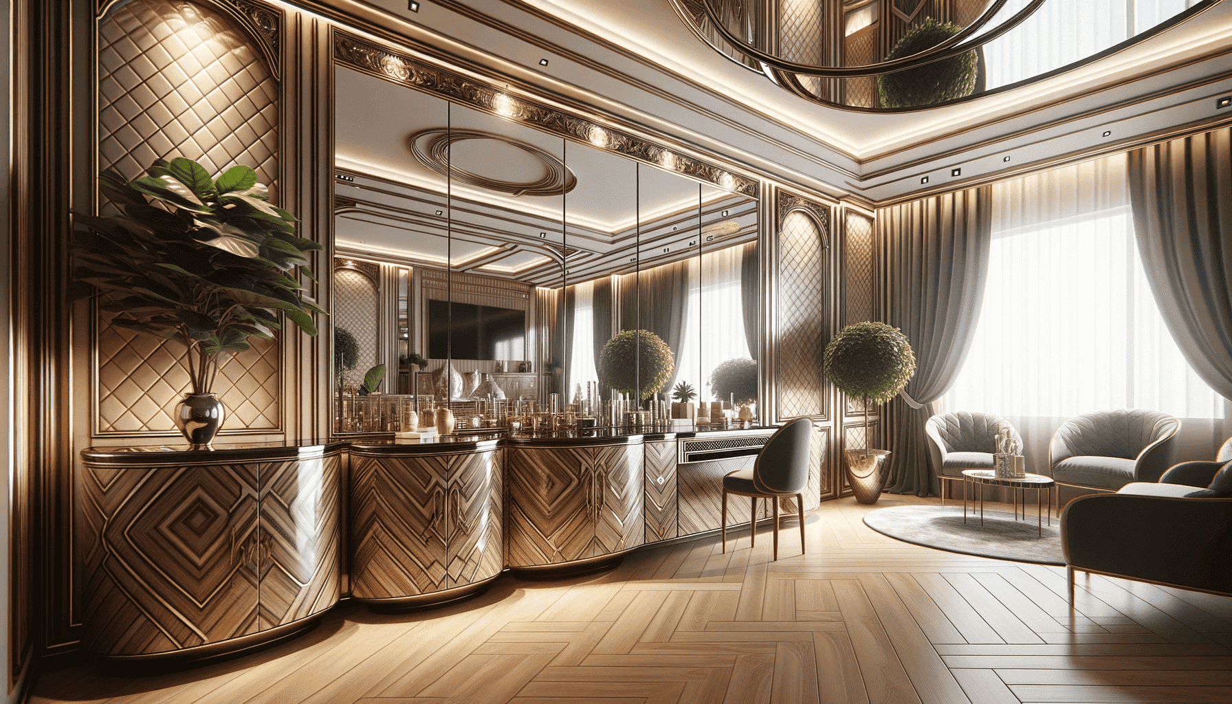 Шкафы с элементами глянцевого шпона и зеркалами представляют собой идеальное сочетание эстетики и функциональности. Глянцевый шпон придает мебели элегантный и современный вид, а зеркала визуально увеличивают пространство и добавляют свет. Эти элементы делают шкафы не только красивыми, но и практичными, что особенно важно для людей, стремящихся к поддержанию роскошного образа жизни.