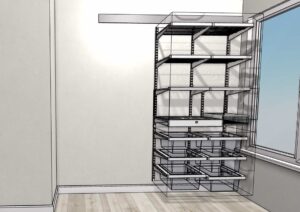 Система ARISTO 188×230 см: сетчатые полки, штанги и обувницы на навесном креплении; э...