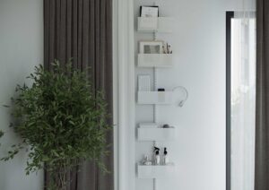 Открытые полки с зеркалом — лёгкое решение для хранения и визуального расширения пространства