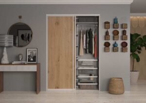 Гардеробная в нише 159×229,8 см: проволочные полки, выдвижные корзины с доводчиком и ...