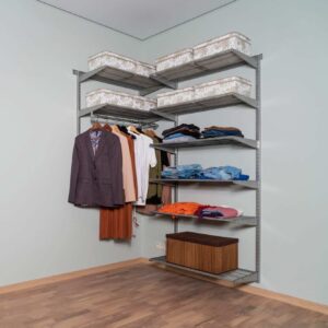 Угловая гардеробная система ARISTO 230×130×230: открытые металлические полки и навесн...