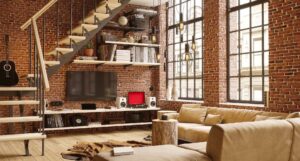 Гардеробная система ARISTO под лестницей с чёрным металлом и деревянным декором превр...