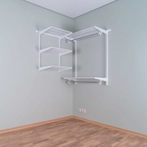 Угловая гардеробная система ARISTO 230×130×230: открытые металлические полки и навесн...