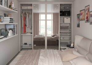 Раздвижная перегородка — это функциональное решение для разделения пространства в офисах, салонах красоты и медицинских учреждениях. Откатная дверь с повышенным сроком службы обеспечивает плавное и бесшумное движение в обе стороны, а доводчик фиксирует её в открытом положении без усилий. Сочетание прозрачного и матового стекла в цвете капучино придаёт перегородке оригинальность, позволяя сохранить свет и визуальную связь между помещениями, одновременно создавая атмосферу уюта и защищенности. Вы можете выбрать вариант с полностью прозрачным или матовым стеклом, а также заказать перегородку в любом цветовом решении, что делает её универсальным элементом интерьера. Эта перегородка станет отличным дополнением к гардеробной системе, обеспечивая стильное и практичное разграничение пространства.
