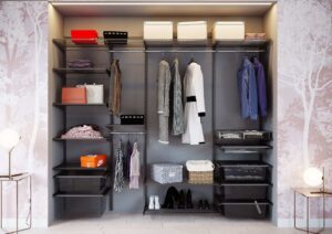 Встроенная гардеробная система ARISTO 260×45×230: проволочные полки и сетчатые корзин...
